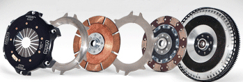 Compelete ultra light-weight compressed ceramic bronze full race twin disc systems.