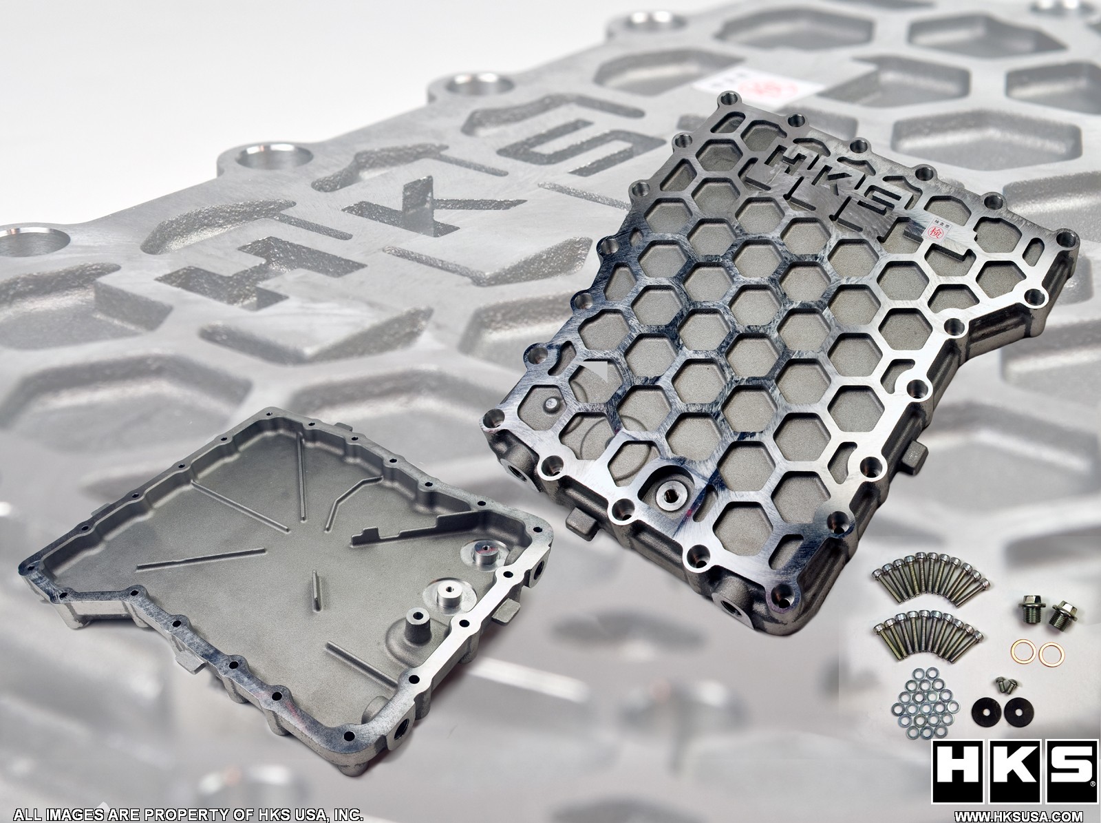 HKS Transmission Oil Pan for the GR6 NISSAN GT-R R35, utilizes high strength Aluminum casting "honey comb" design, which can improve the rigidity of the transmission case. The load to the internal components can be reduced, and the gears will rotate more smoothly. Since the GT-R is continuously evolving as a higher performance vehicle, reducing the load to the transmission with the HKS Oil Pan is highly effective and recommended for the longivity of the vehicle.