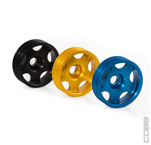 The COBB Tuning Lightweight Main Pulley is CAD designed and CNC machines from Billet 6061-T6 and anodized to withstanding the toughest of under engine conditions. Replacing the factory main pulley, the lightweight unit improves acceleration by reducing the rotational mass of the stock unit by as much as 4lbs.