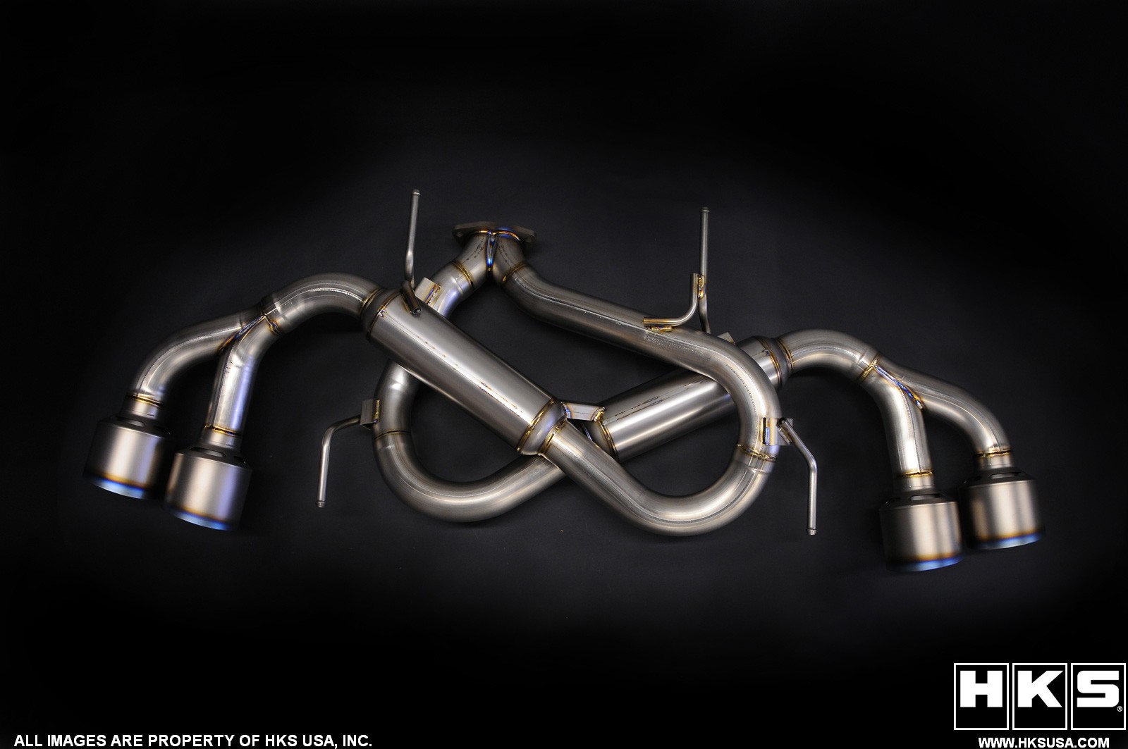 Superior spec R is the high end model of the HKS exhaust systems. The durable full titanium exhaust system is lightweight and weighs 10kg (22 lbs.) lighter than the stock exhaust system. The large radius piping layout optimizes exhaust gas pressure and temperature allowing peak performance and an aggressive exhaust tone. Dual layer titanium tips reduce heat while the functional slits inside the tips assist in noise reduction.