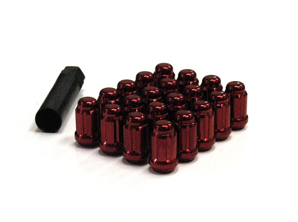 The 12x1.50 thread pattern is suitable for for Acura, Honda, Hyundai, Lexus, Mazda, Mitsubishi, Scion, and Toyota. The red color complements gunmetal and black rims or provide an excellent contrast to brighter colored wheels. The set includes 20 lug nuts and key adapter.