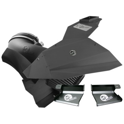 This intake represents true race-inspired technology. The intake housing and top is constructed from fully fabricated black anodized 6061 aluminum for light weight and maximum flow. The CAD designed intake tubes are engineered for maximum flow, velocity and strength. This system utilizes a huge 6" PRO 5R performance air filter which is construced of 5-layers of progressive cotton gauze that produces maximum flow. As an added value, this system also comes with a 6" PRO Dry S performance air filter which is constructed of three-layers of synthetic media that requires no oil and cleans with soap and water for maximum convenience. This system is a Value Pack and includes a set of Dynamic Air Scoops to help guide more air into the intake. all aFe intakes come complete with housing, tubes, filters and all hardware necessary for an easy installation.