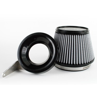 This Stage 1 cold air intake system produces 5hp and 5.5lbs. x ft. torque. This air intake system features a washable/reusable conical air filter that improves airflow for increased horsepower and torque. Filter is constructed with 100% polyurethane for long life and multiple cleaning cycles.The filter mounts to a 3-angle adaptor that increases intake velocity improving performance and throttle response.