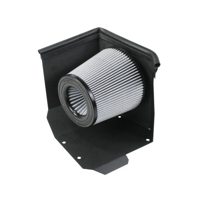 This aFe Stage 1 cold air intake system delivers quick and easy horsepower within minutes. Enclosed in a durable 18-gauge heat shield that replaces the stock air box, a massive 9" base x 8" tall filter with 5 1/2" flange washable/reusable 360 degree conical non-oiled air filter increases airflow. This intake system also features a 3-angle adaptor for direct bolt up to the factory MAF sensor. The one-piece heat shield requires no assembly and the filter is constructed with 100% polyurethane for long life and multiple cleaning cycles. Fits GM 2500/3500 with mechanical fan.