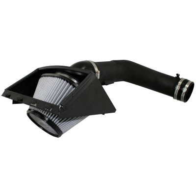 This aFe Stage 2 cold air intake produces 16hp and 16lbs. x ft. of torque and outflows the factory intake by 116%. Enclosed in a durable 16 gauge, powder-coated heat shield; this air intake system features a washable/reusable conical air filter that improves airflow for increased horsepower and torque. This intake system also features a heat-insulating black powder-coated aluminum tube that replaces the stock intake tract and directs increased air flow with improved volumetric efficiency for maximum performance. One-piece heat shield requires little or no assembly and the filter is constructed with 100% polyurethane for long life and multiple cleaning cycles. This system mounts to the factory lower intake housing.