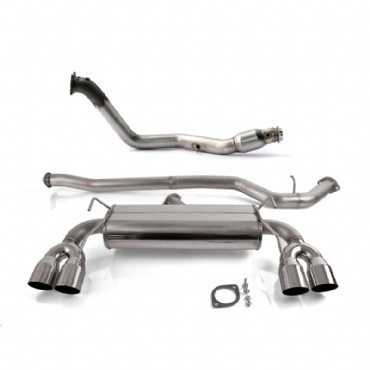 304 stainless steel is used throughout the exhaust construction. All components are meticulously TIG welded for outstanding appearance and strength. Four custom exhaust tips fill the factory bumper cut-outs perfectly, protruding just enough to show off the COBB logos etched into the top of each polished tip.