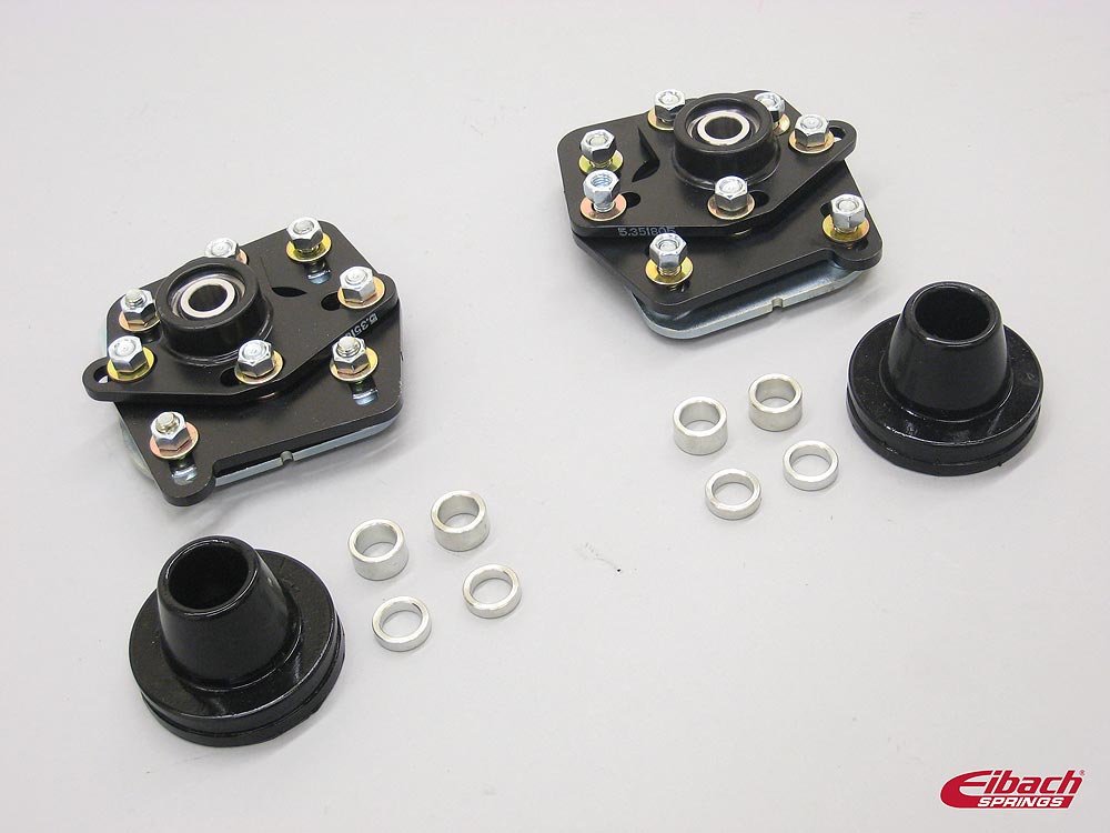 Eibach offers a complete range of PRO-ALIGNMENT kits, which provide a simple, affordable solution to correct excessive negative camber. These alignment kits not only assist in adjusting a vehicle's camber back to factory specifications, but they also allow an experienced chassis tuner to utilize the increased adjustment range to "dial-in" a performance-oriented alignment that uses negative camber to maximize a chassis' true potential. With correct alignment, turn-in becomes more precise and handling becomes gratifyingly crisp and predictable. High-speed stability is also enhanced, making an Eibach PRO-ALIGNMENT kit a necessity for the serious performance tuner.