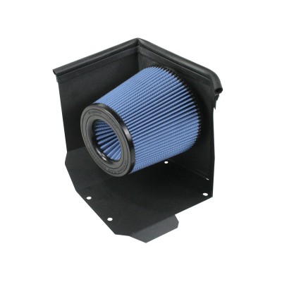 This aFe Stage 1 cold air intake system delivers quick and easy horsepower within minutes. Enclosed in a durable 18-gauge heat shield that replaces the stock air box, a massive 9" base x 8" tall filter with 5 1/2" flange washable/reusable 360 degree conical pre-oiled air filter increases airflow. This intake system also features a 3-angle adaptor for direct bolt up to the factory MAF sensor. The one-piece heat shield requires no assembly and the filter is constructed with 100% polyurethane for long life and multiple cleaning cycles. Fits GM 2500/3500 with mechanical fan.