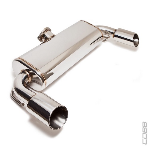 Significant attention was devoted to the packaging of this exhaust. Tubing diameter was increased to 3" and bends were kept to a minimum with large radii for optimum flow characteristics. Fitment was extensively worked to ensure maximum ground clearance to accommodate cars with very low ride heights. Designed as a direct replacement for the factory cat back exhaust, it uses all of the stock mounting points and is compatible with the factory cat pipe as well as the previously released COBB High Flow Cat Pipe.