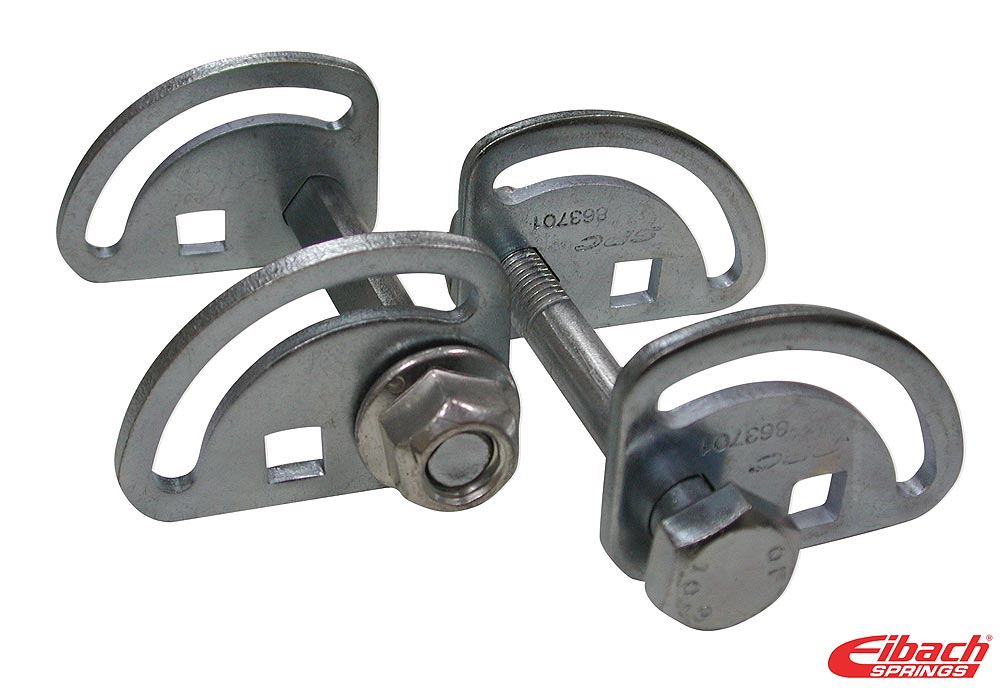 Eibach offers a complete range of PRO-ALIGNMENT kits, which provide a simple, affordable solution to correct excessive negative camber. These alignment kits not only assist in adjusting a vehicle's camber back to factory specifications, but they also allow an experienced chassis tuner to utilize the increased adjustment range to dial-in a performance-oriented alignment that uses negative camber to maximize a chassis' true potential. With correct alignment, turn-in becomes more precise and handling becomes gratifyingly crisp and predictable. High-speed stability is also enhanced, making an Eibach PRO-ALIGNMENT kit a necessity for the serious performance tuner.