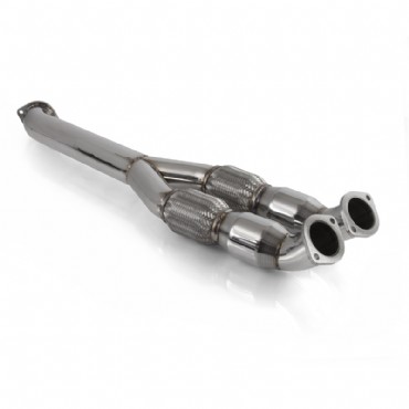 Both the catted and catless versions of the COBB 3.5-inch SS Y-Pipe are constructed of 304 stainless steel and TIG welded. The stainless steel flex sections are internally-lined for added lifespan and smoother exhaust flow. Dual 3-inch downpipes feed into a 3.5-inch main pipe. The Y-pipe is designed as a direct factory replacement part.