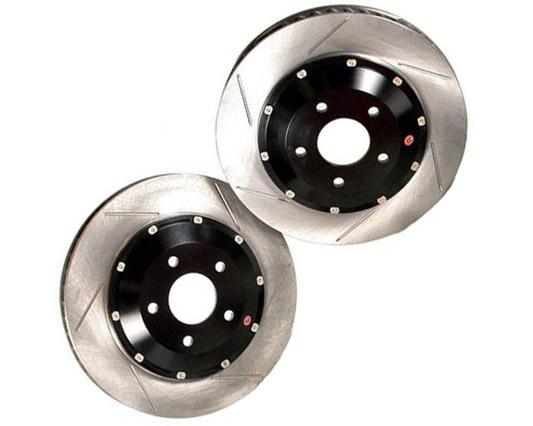 StopTech 2 Piece AeroRotor Direct Replacement Kits are made for racing enthusiasts wanting to upgrade their brake rotors but still want to use their stock calipers. Kits include 2-piece directional floating rotors with pre-assembled directional billet aluminum mounting bells. Under heavy braking rotors get extremely hot. The increase in temperature causes the brake rotors to expand. Most brake rotors will cone when subjected to extreme temperatures, decreasing the contact patch between brake pad and rotor as well as decreasing brake system performance. 2-piece rotors allow expansion without coning. StopTech Aero Rotors are up to 8 pounds lighter than stock rotors and push up to 61% more air for better cooling and reduced fade on the track. StopTech has incorporated several design innovations to improve rotor airflow, cooling and heat capacity. The ability to absorb and dissipate heat is essential to brake system performance, under extreme temperatures a brake systems ability to stop your car greatly diminishes. The uniquely designed vanes inside the disc optimize airflow through the rotor. This improved directional design minimizes turbulence and flows more air than any rotor tested. Better Airflow means better cooling and less brake fade. StopTech AeroRotors are available with anti-corrosion gold zinc coating benefits customers who live in cold climates, where snow and road salt are commonly encountered. Zinc coating also benefits customers who prefer no visible surface rust on the vanes and outer circumference of rotors.