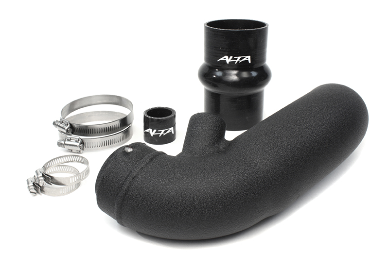 The ALTA Turbo Inlet replaces the OEM plastic turbo inlet hose. With a larger internal volume, smooth interior surface allows smoother airflow and makes more horse power and torque. Featuring a CNC'd aluminum coupler and mandrel bent tubing, we have created an even bigger and better turbo inlet hose then even our earlier models.