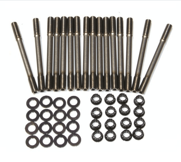 The ARP VQ35 L19 Head Stud Kit for the 2003-2006 Nissan 350z were produced due to head lift issues at high WHP where additional clamping force is needed. While standard ARP studs can be torqued down to 65-70ft/lbs, these ARP made with 262,000psi tensile strength L19 steel can be torqued down to 90-95 ft/lbs easily, without breaking the stud. These are a direct drop in replacement, and require no special block modifications or machining.