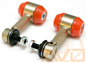 Heavy duty AVO adjustable rear endlinks are a significant upgrade from the standard endlinks. The standard endlinks are quite slender, and are prone to bending when a performance rear stabilizer bar is fitted. And if you change the height of the car's suspension, you may end up with issues with the rear stabilizer bar being pushed up too high, affecting the effectiveness of the rear bar. Our adjustable rear endlink allows you to not only fine-tune the rear bar setup, but is much stronger as well. Polyurethane bushings at the bottom help remove unwanted movement, and the upgraded ball-joint is stronger as well.