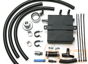 Boost and high RPM's increase the amount of crank-case blow-by causing problems for the stock engine breathing system as it very quickly becomes overloaded. This can lead to oil being blown into the air-intake, increasing the possibility of detonation due to oil entering the combustion chambers. This can be solved by fitting AVO's oil/vapour separator tank kit, which removes oil mist from crankcase gas before it is returned back to the engines air-intake. The Breather Tank kit comes with all fittings and accessories necessary, including a turbo-specific high pressure PCV valve replacement that will deal with any potentionl boost leaks and protect against pressurizing the crankcase under boost. This is also a requirement for higher boost builds.