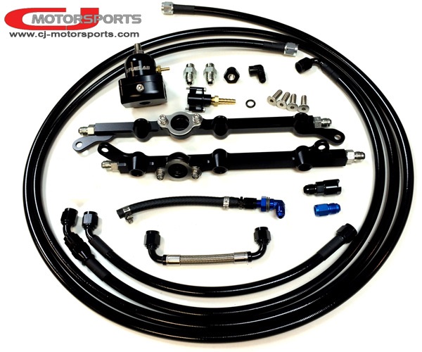 The CJM S1-S for the 370z offers a complete engine bay fuel system upgrade along with return fuel addition. This is a comprehensive system configured to maximize fuel flow while still utilizing the factory feed pipe from the tank.