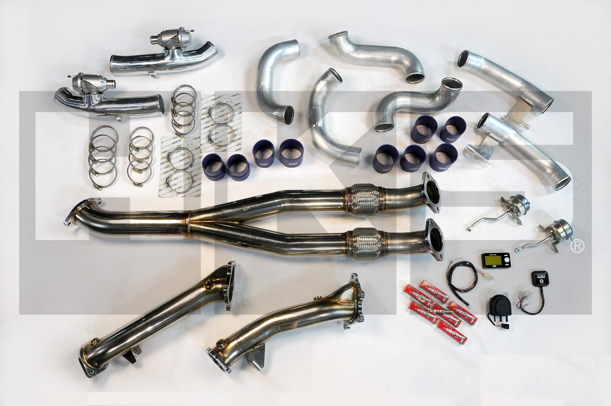 The standard Nissan GT-R R35 is rated at 480 HP, but this kit is brings that number just over 570 HP at the flywheel by way of a new exhaust, intake pipe kit, boost controller and wastegate actuators.