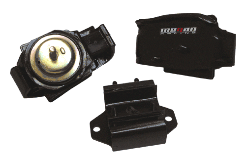 Through the years the soft rubber bushings deteriorate after constant flexing and vibration as well as being punished through weathering; this can cause them to tear and may seriously damage your engine and transmission. Megan Racing has developed a Hard-Rubber/Polyurethane motor mounts for the 240SX Chassis that will fit the KA24E, KA24DE and SR20DET powerplants. These reinforced mounts are perfect for the enthusiast who is looking to get the most from their 240SX as they will allow more energy to be transfered to the wheels instead of absorbing the energy into the soft rubber.