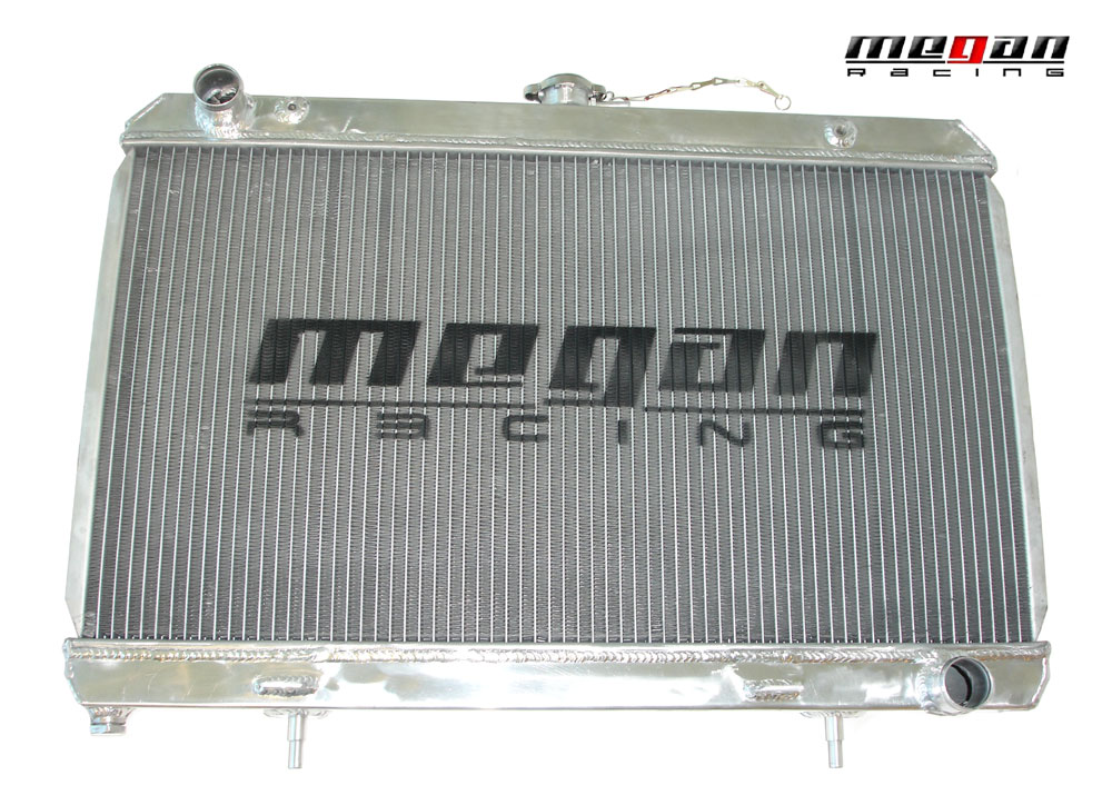 We are proud to introduce the new Megan Racing high performance aluminum radiator. Anytime an individual introduces their car to a racing/drifting environment, the temperature of the vehicles engine will skyrocket. One common and effective method of reducing engine temperature is to employ an aluminum radiator. This is a cost effective upgrade which can ultimately save an engine during competition or spirited driving. Often times, a temperature drop of twenty degrees or more will be noticed when using an aluminum radiator. Also included is a 1.1 BAR radiator cap.
