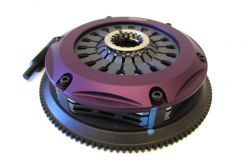 All Hyper Clutches come with a steel flywheel and a 6-puck disc with cerametallic facing, and a spring center damper. The disc is generally smaller and thinner than the OEM disc making for lower inertia and therefore quicker, easier shifting. The higher clamp load and cerametallic friction facings give approximately twice the holding torque of the OEM clutch and generally higher than other single plate clutches.