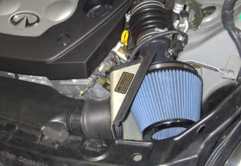 INFINITI G35 Pop-Charger produces a real 6.5+ hp increase at the wheels! Hood sealed heat shield insures outside air temperatures. This system consistently out performs extended piping systems on the G35 without the risk of ingesting water due to remote filter positioning.