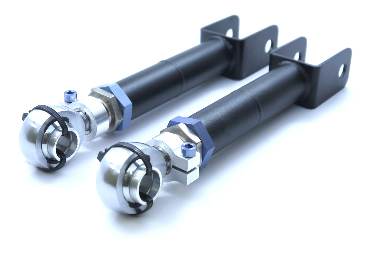 Our SPL TITANIUM rear traction links eliminate the mushy rubber bushings on the stock links to reduce toe change in the rear suspension under hard acceleration/braking and when going over bumps. This provides more stability and predictability to the rear suspension for tighter handling. Our traction links are also length adjustable to allow the rear suspension bumpsteer characteristics to be adjusted.