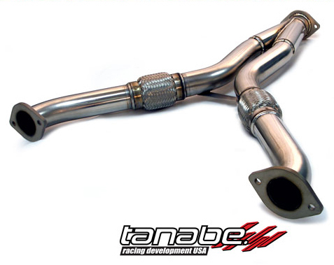 The ultra efficient Y-PIPE for vehicles with the VQ35DE engine like the 2003-2006 Nissan 350z eliminates huge restrictions found on the factory Nissan/Infiniti exhaust system's piping, and provides huge horsepower gains when used with Tanabe catback exhausts.