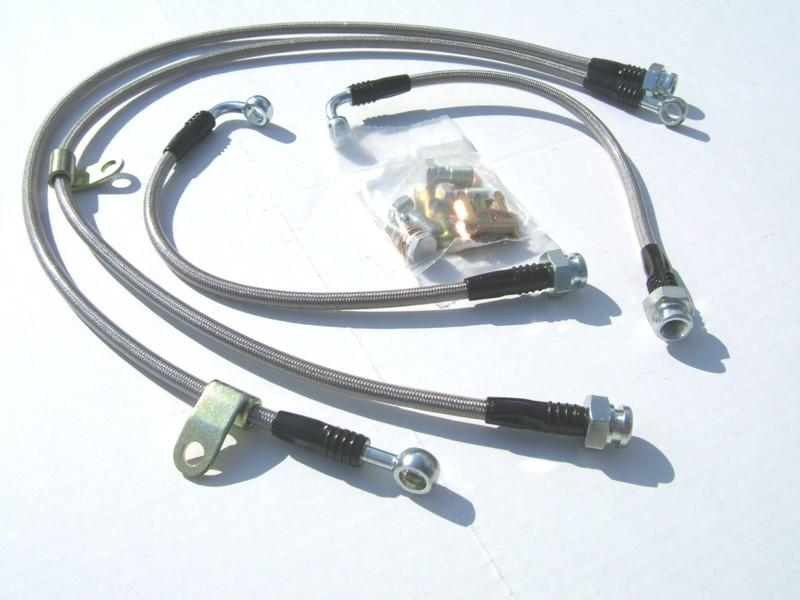 The Techna stainless steel brake lines for the 2007-2008 Nissan 350z improve pedal feel and reduce the amount of time between applied pedal pressure and actual deceleration by reducing the expansion that is allowed by stock rubber flex lines. This provides a quicker pedal response and allows the driver to maintain consistent brake pressure and precision brake modulation.