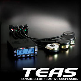 TEAS stands for "Tanabe Electric Active Suspension" and is the counterpart of the Sustec Pro FIVE & Sustec Pro SEVEN suspensions. This compact unit is the 'brain' behind the highly sophisticated new Tanabe suspensions. TEAS is a fully programmable dampener controller that allows for dampening force to be automatically adjusted while driving. TEAS accomplishes this by connecting and using the signal from the vehicle's Speed Sensor.