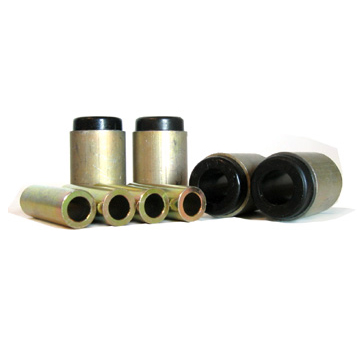 Whiteline Plus Control Arm and Trailing Arm bushings provide the softness needed for street driven, low vibration, noise and harshness characteristics, while displaying extreme abrasion, tear and cut resistance, and near-zero compression set at a lower durometer reading of 70-80 (versus most poly bushings 100+ rating). In addition, Whiteline Plus polyurethane bushings are able to be bonded directly to the metal shell, which provide a method of flow control giving the bushing the characteristics of soft ride while on smooth roads, and when under cornering pressure cause the bushing to become firmer for improved suspension performance.