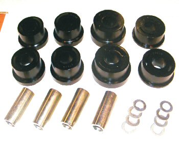 One of the most noticeable compromises on the 03-06 G35 and 350Z suspension is the soft, hydraulic filled rubber rear subframe bushings that produce flex and squirm under hard acceleration and aggressive driving. To remedy this common problem, Whiteline has developed their G35/350z rear subframe bushing kit, designed around their famous Whiteline Plus series polyurethane bushings. The Whiteline rear subframe bushing kit offers 'no compromise' performance with their unique translucent black polyurethane bushings, specifically created to provide the ride quality of a rubber bushing at low speed yet offer the performance of a solid bushing when under cornering, acceleration and braking load for. These bushings will result in more chassis control and provide a more responsive, predicable and better handling Z or G. The Whiteline Plus rear subframe bushing kit replaces all four points of the rear cradle and includes all the hardware and instructions for a complete out of the box install.