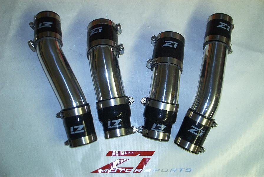 Truly one of the best cosmetic engine bay enhancements in combination with a polished or chromed intake plenum! This kit consists of four chromed mandrel bent pipes, silicone couplers, and high quality stainless steel hoseclamps.